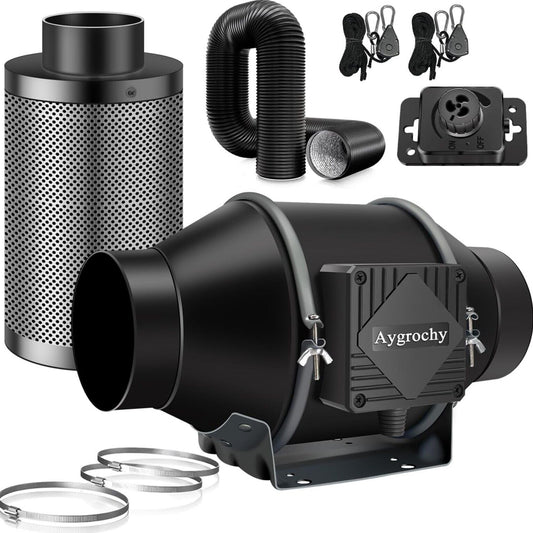 100mm Regelbar Rohrventilator - 363m³/h, EC Motor, Kohlefilter, Schlauch