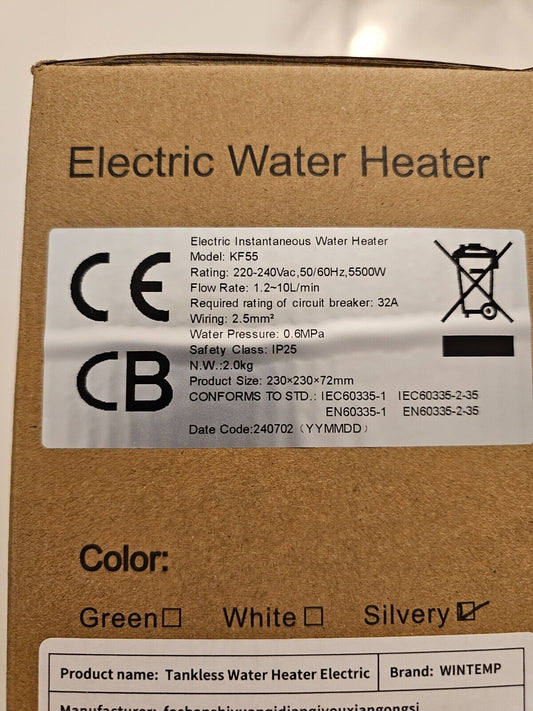 Elektrischer Durchlauferhitzer 5,5 KW 230V, Ohne Stecker, Kleiner Küchen-Durchla