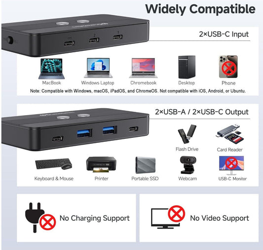 10Gbps 4-Port USB/USB-C Switch mit Fernbedienung