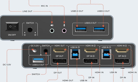 HDMI DP KVM-Switch 4K@60Hz Dual Monitor für 2 PCs USB 3.0
