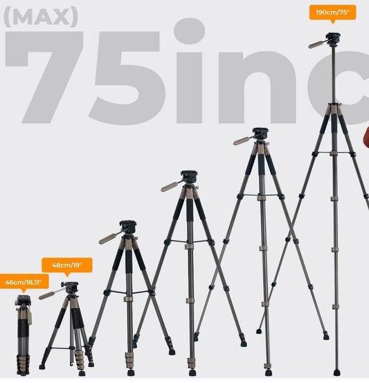 Kamerastativ von 46 cm bis 190 cm Höhe verstellbar Leicht Grau mit Tasche