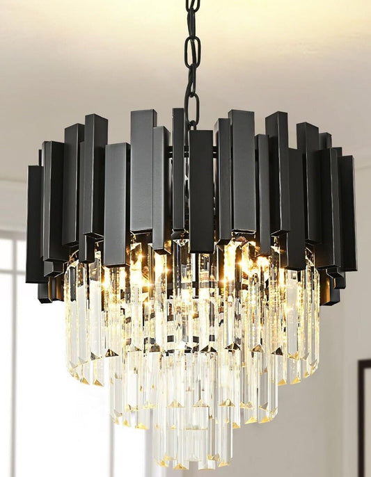 Kristall Kronleuchter Schwarz D40cm E27x3