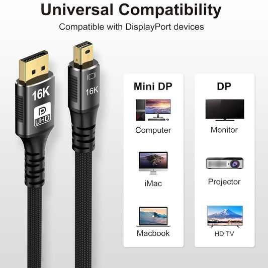 Mini DP zu DP 3m 16K-Kabel 8K@120Hz, 4K@240Hz