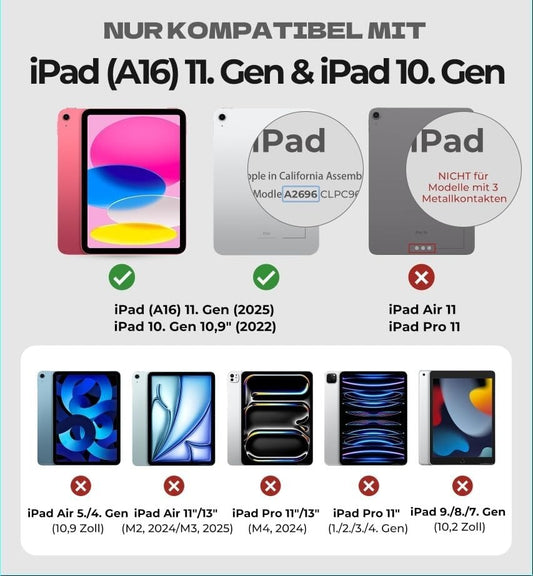 Tastatur iPad A16 11" 2025/10.9" 2022 QWERTZ Trackpad Schwarz