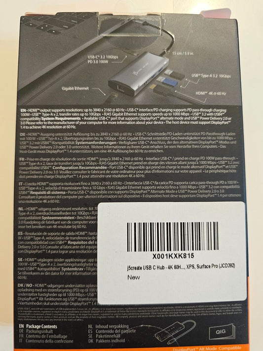 USB C Hub 4K@60Hz, 100W PD, Ethernet RJ45, 10Gbps USB-C/A 3.2Gen 2, MicroSD & SD