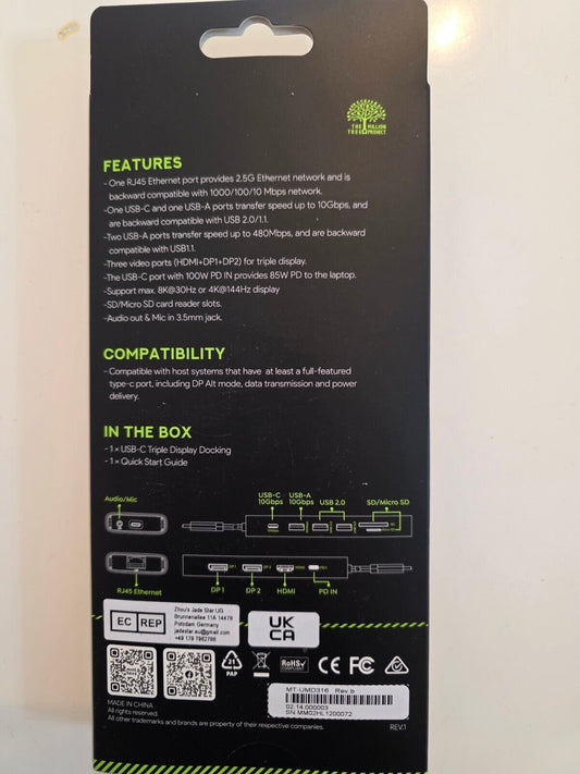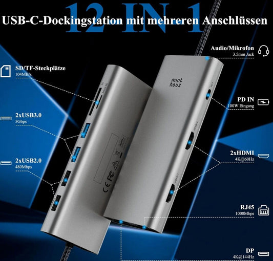 USB C Docking Station 12in1 Triple Monitor 4K@144Hz