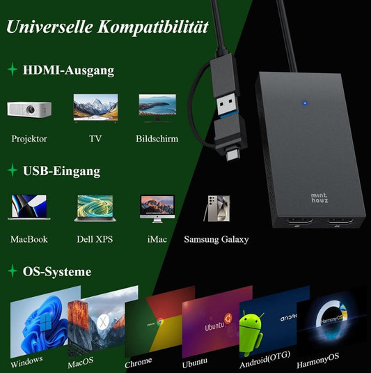 USB 3.0/USB C HDMI Splitter 4K@30Hz & 1080P@60Hz Dual