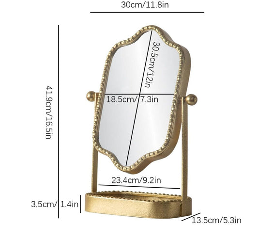 Vintage Tischspiegel mit Tablett, Eitelkeitsspiegel mit Metallrahmen, Antiker Sc