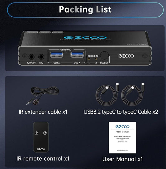 4K@120Hz USB-C KVM Switch HDMI 2.1 für 2 Laptops, PD100W, Fernbedienung