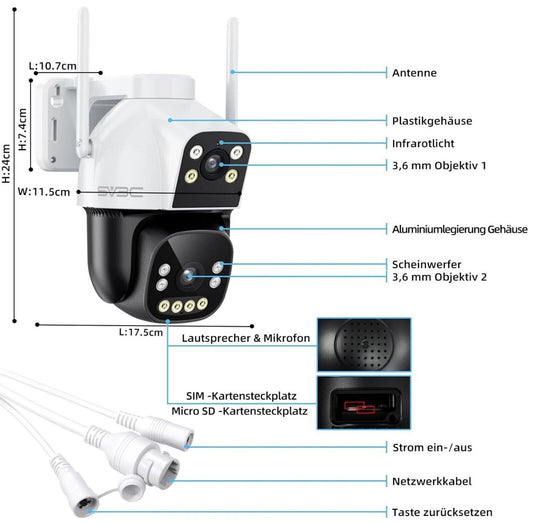 4G LTE Überwachungskamera Aussen Dual-Objektiv 1080P IP66