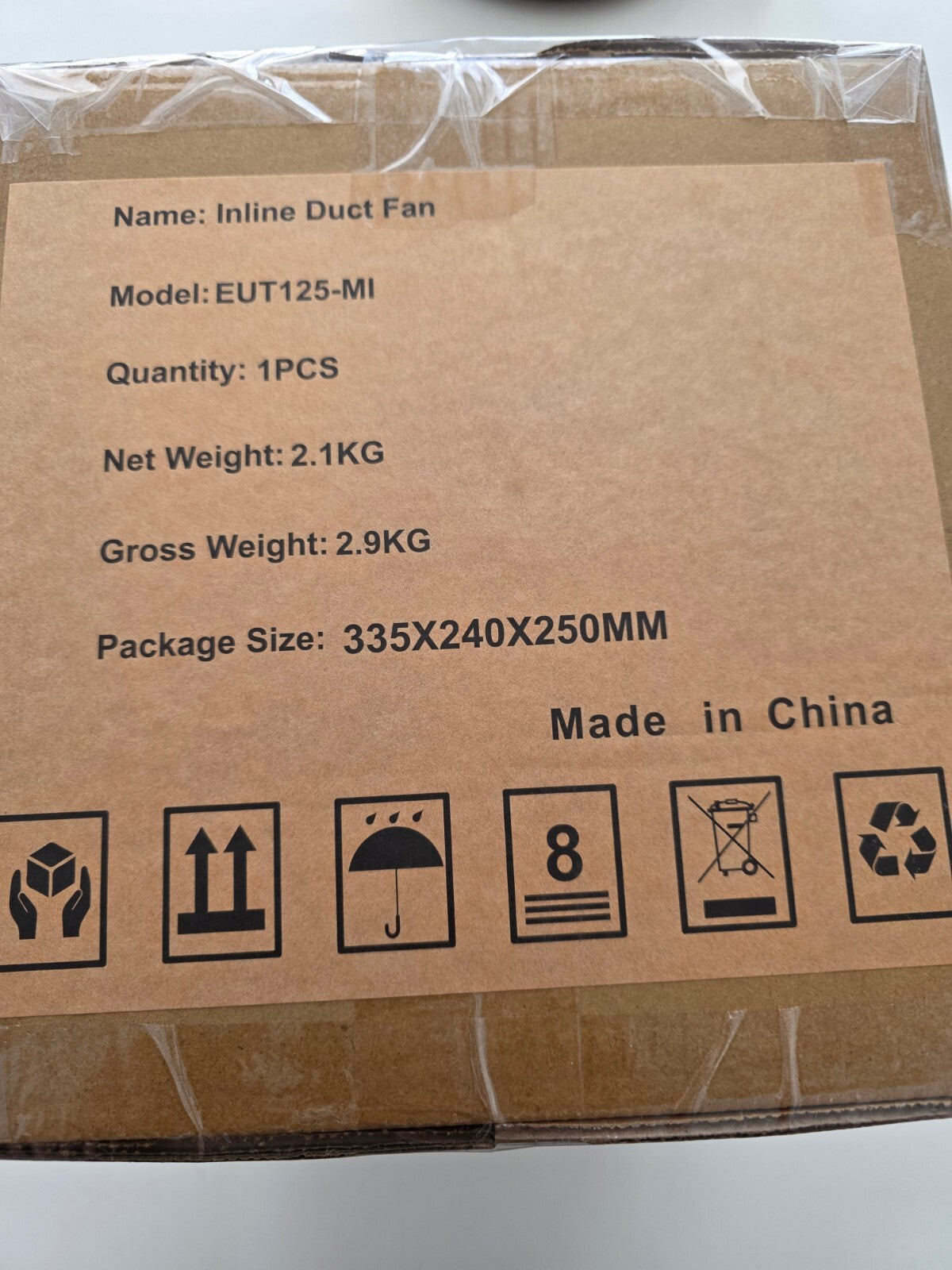 - Anschlüsse: 2-poliger EU-Stecker (220-240V, 50 Hz), 125mm Rohrdurchmesser für Abluftschläuche