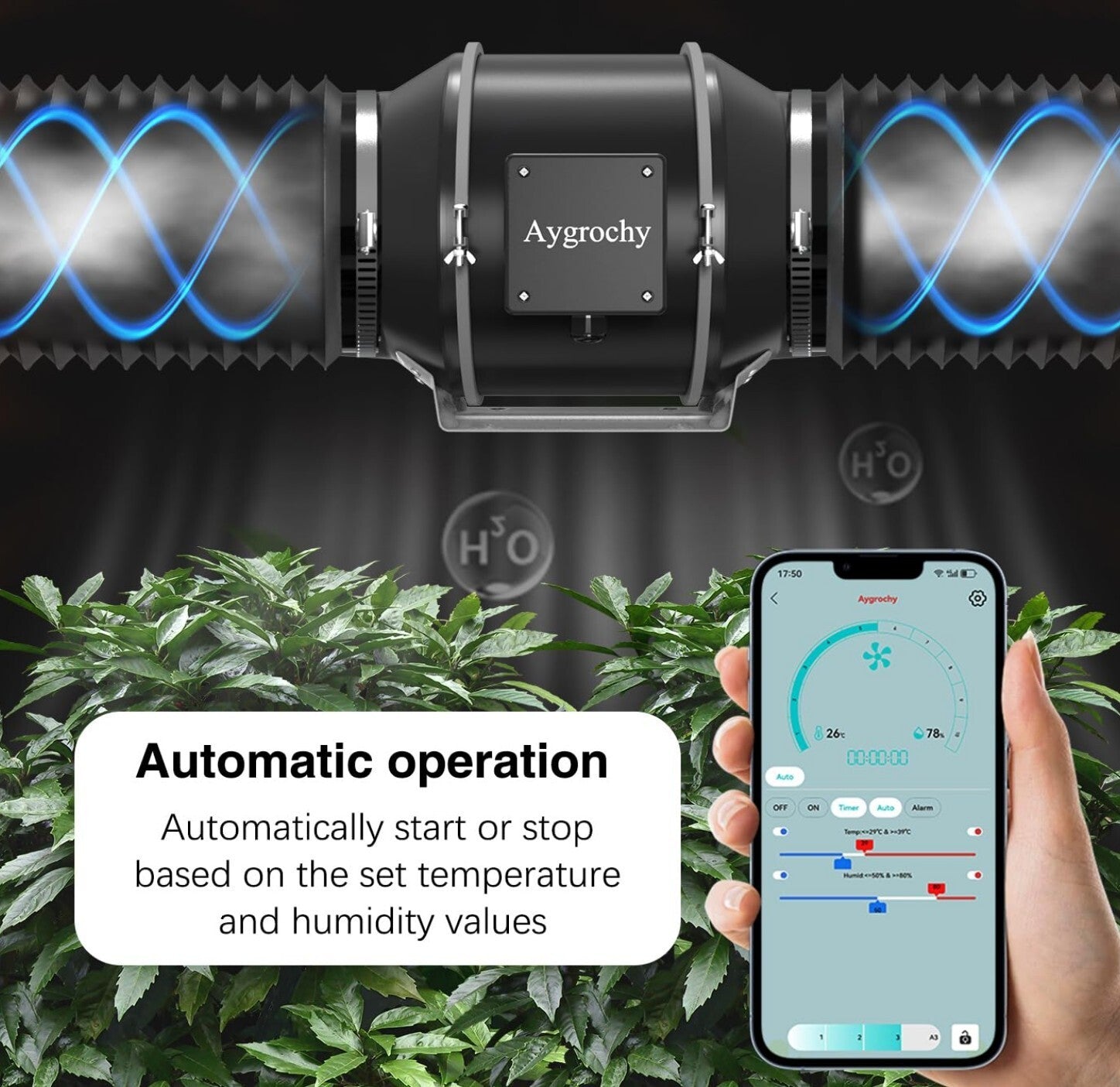 Optimieren Sie Ihre Belüftung mit diesem hochmodernen 125mm WiFi Rohrventilator, ideal für Wachstumszelte, Hydrokultur, Küchen, Keller oder gewerbliche Trocknung. Mit energieeffizientem EC-Motor, WiFi-App-Steuerung (Tuya/Smartlife) und präzisem Temperatur- und Feuchtigkeitsregler bietet er zuverlässige Leistung und einfache Bedienung für professionelle und private Anwendungen.