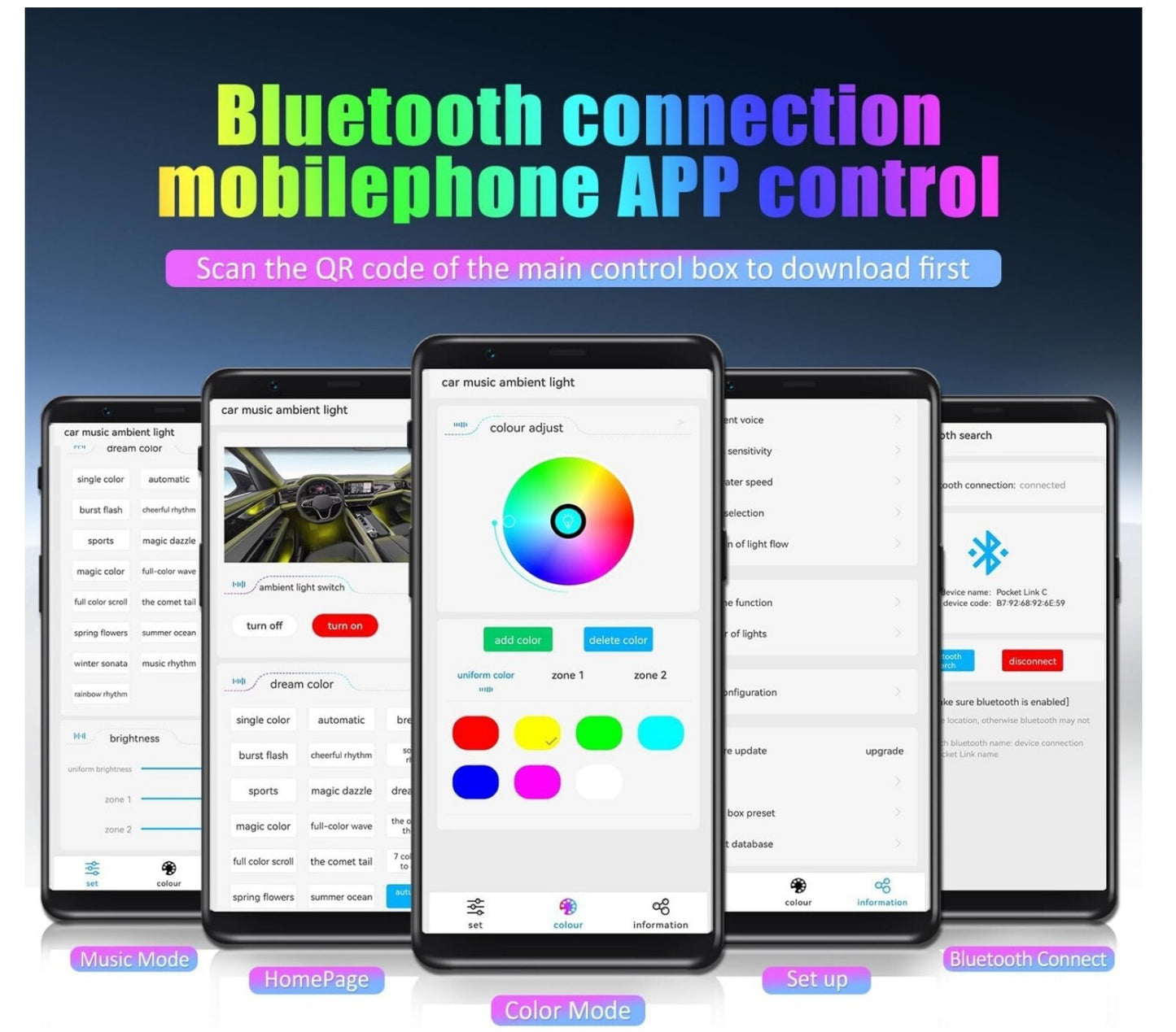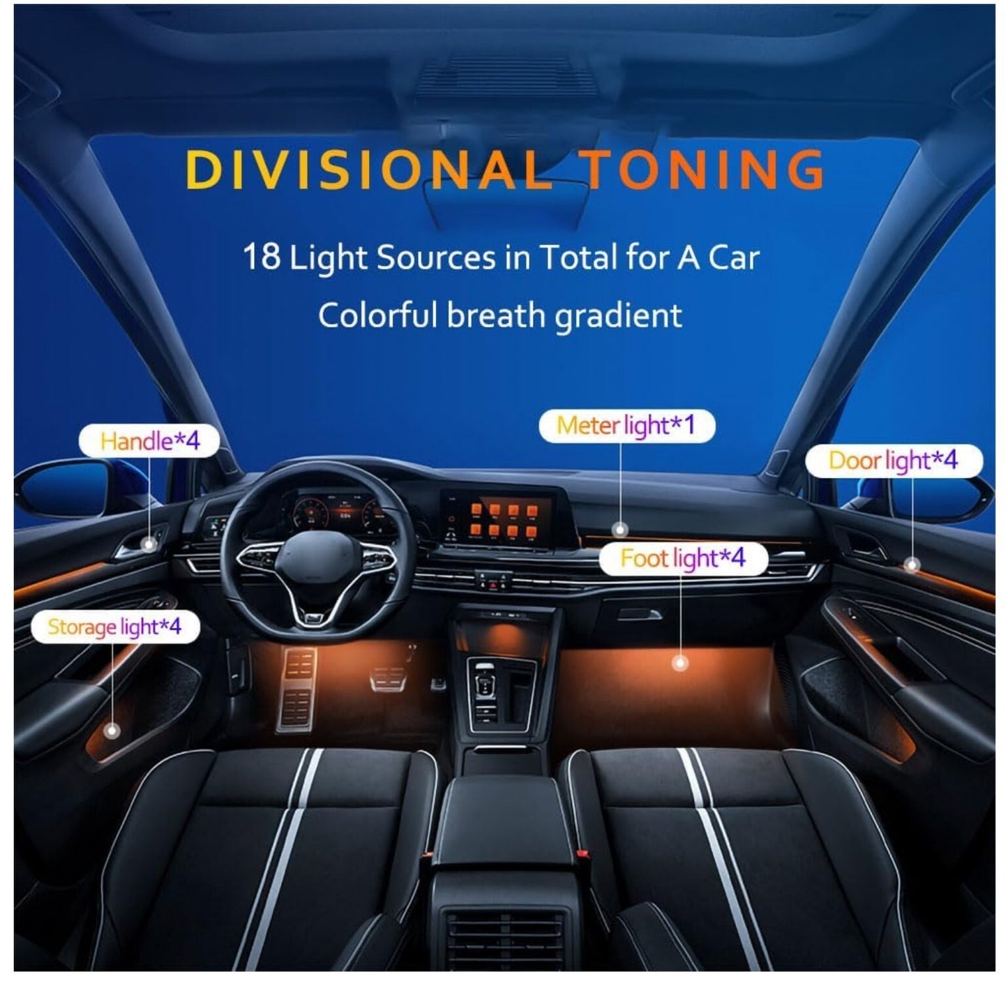 Das 18-in-1 Kit bietet beeindruckende Lichteffekte mit Musiksynchronisation, die jede Fahrt in ein Erlebnis verwandeln. Die einfache App-Steuerung und die mitgelieferten Installationswerkzeuge machen den Einbau auch für Laien machbar. Perfekt für Individualisten, die ihr Auto aufwerten möchten