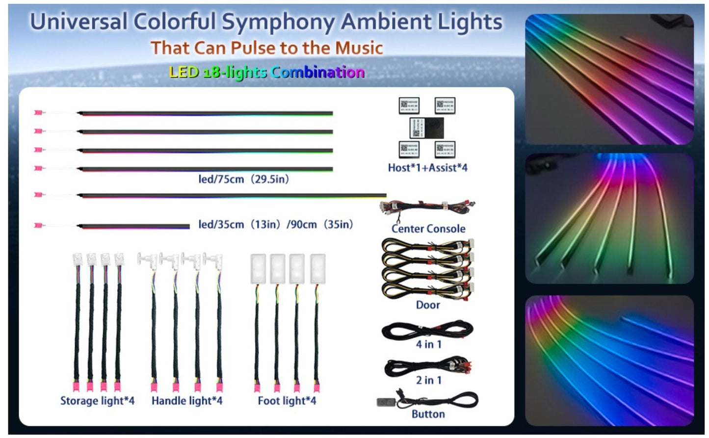 - 18-in-1 Komplettset: Enthält 6 Acrylfaser-Lichtstreifen, 4 Speicherlichter, 4 Grifflichter, 4 Fußlichter, 1 Hauptcontroller, 4 Sub-Controller; inkl. Installationsanleitung und Werkzeuge.