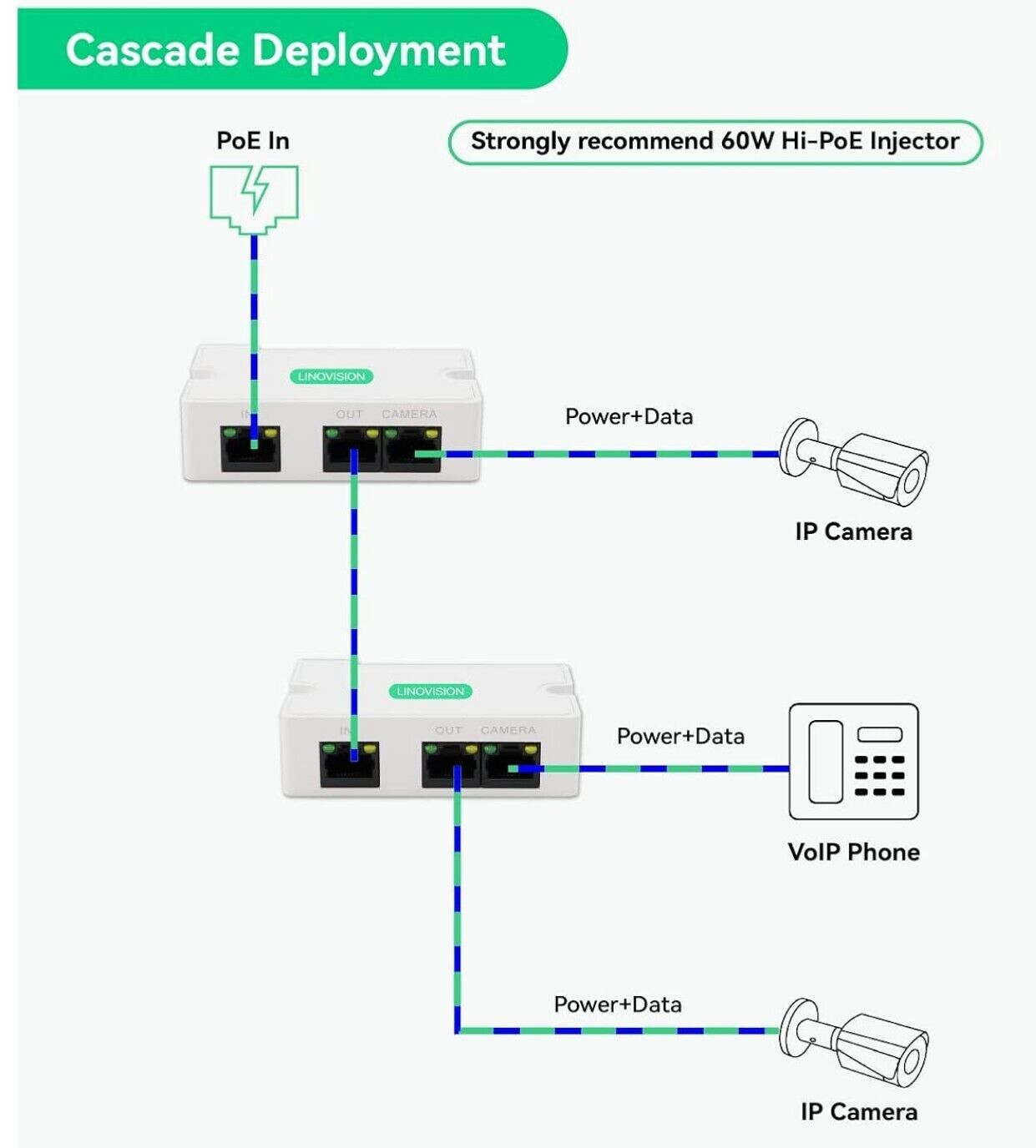 Die intelligente Stromverteilung (Camera-Port bis 8W, Out-Port bis 15W) und der robuste Hardware-PoE-Chipsatz garantieren zuverlässige Verbindungen. Ob zur Kamerakonfiguration vor Ort oder zur Erweiterung Ihres Netzwerks – dieses Gerät passt in Verteilerdosen und liefert Top-Leistung.