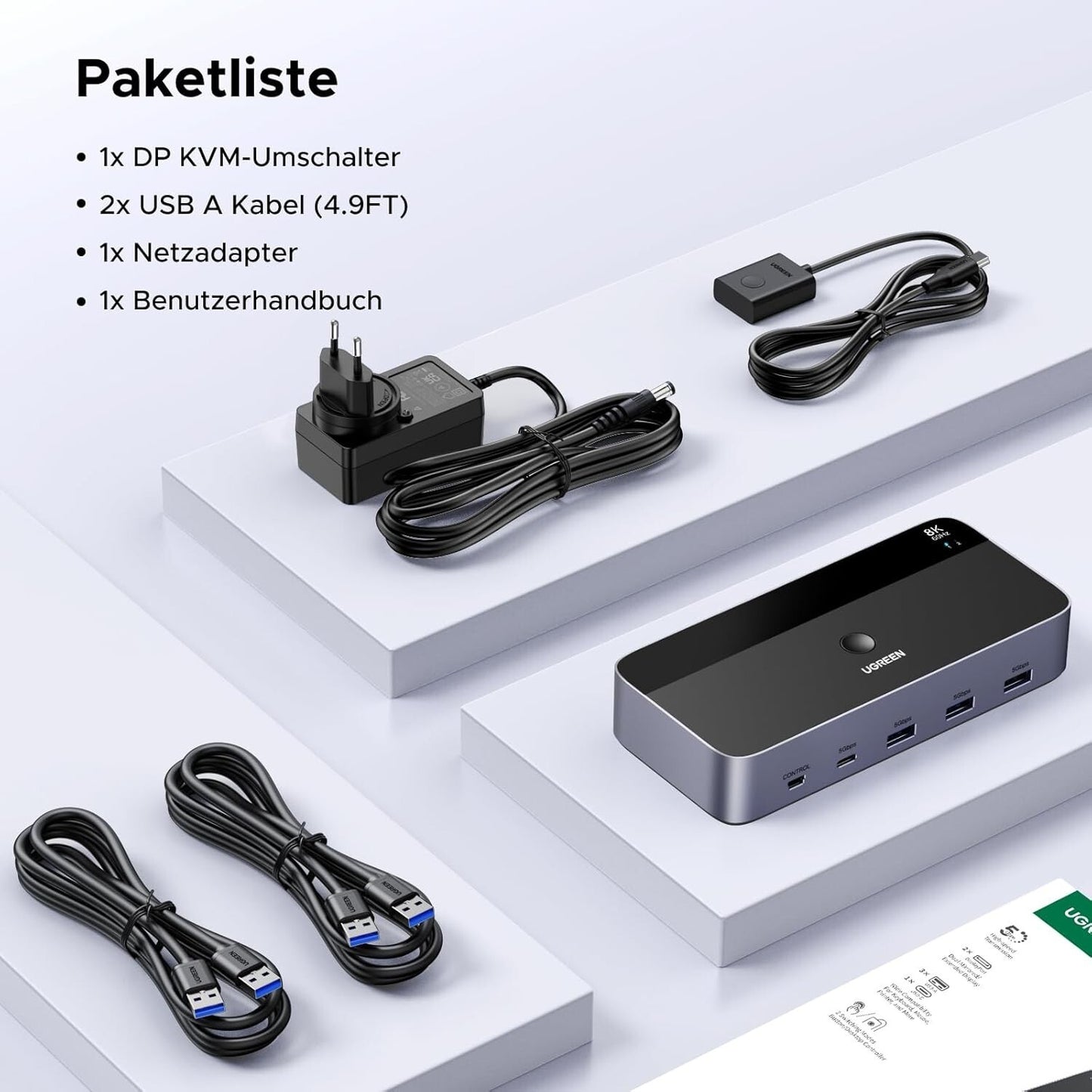 Original verpackt, neu – Optimieren Sie Ihr Multi-PC-Setup mit dem UGREEN DisplayPort KVM Switch! Dieser leistungsstarke Umschalter ermöglicht zwei Computern, zwei 8K@60Hz Monitore sowie Tastatur, Maus und USB-Geräte über 4 USB 3.0-Anschlüsse (3x USB-A, 1x USB-C) zu teilen. Mit einfachem Wechsel per Taste oder Desktop-Controller, 5Gbps Übertragung und breiter Kompatibilität (Windows, macOS, Linux) ist er ideal für Gaming, Design oder Büro. Komplett mit Netzadapter und Kabeln für sofortigen Einsatz!