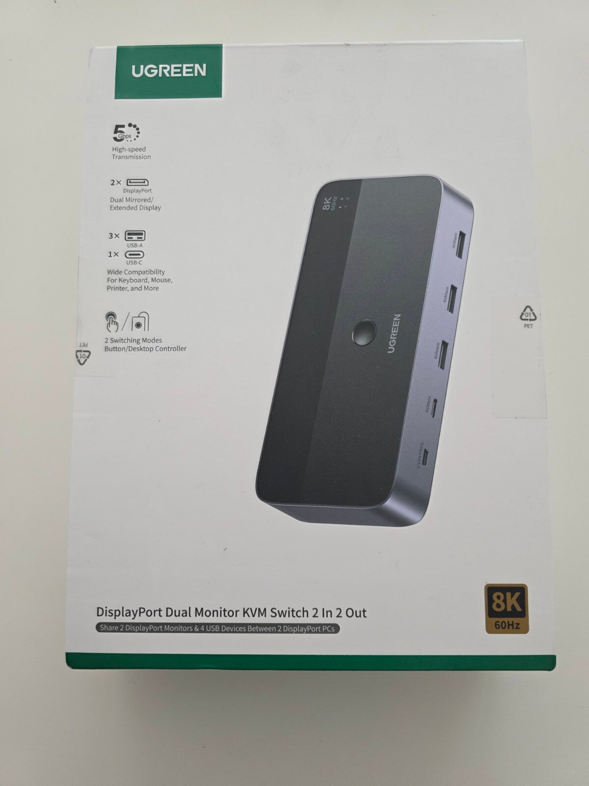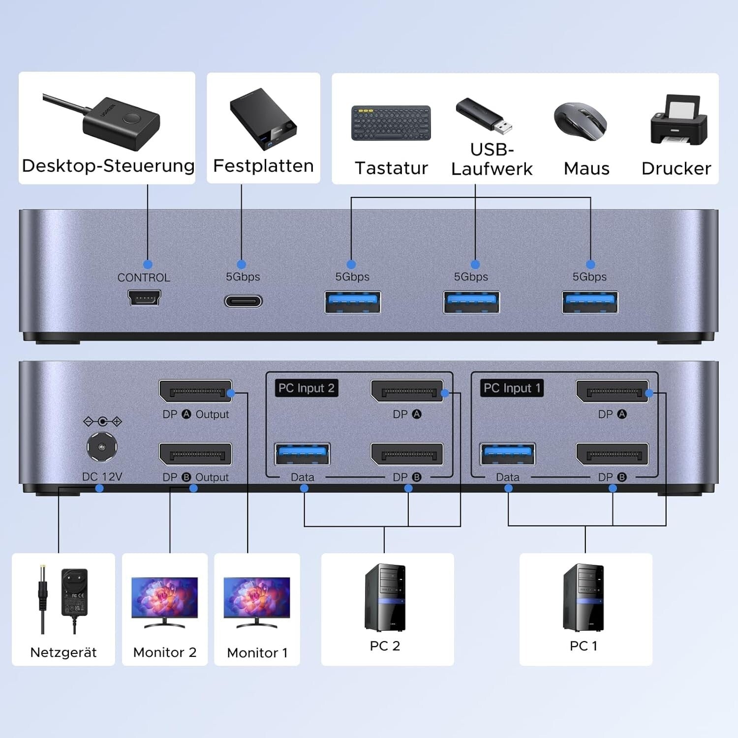 UGREEN DisplayPort KVM Switch 2 PC 2 Monitore 8K@60Hz USB 3.0 Hub