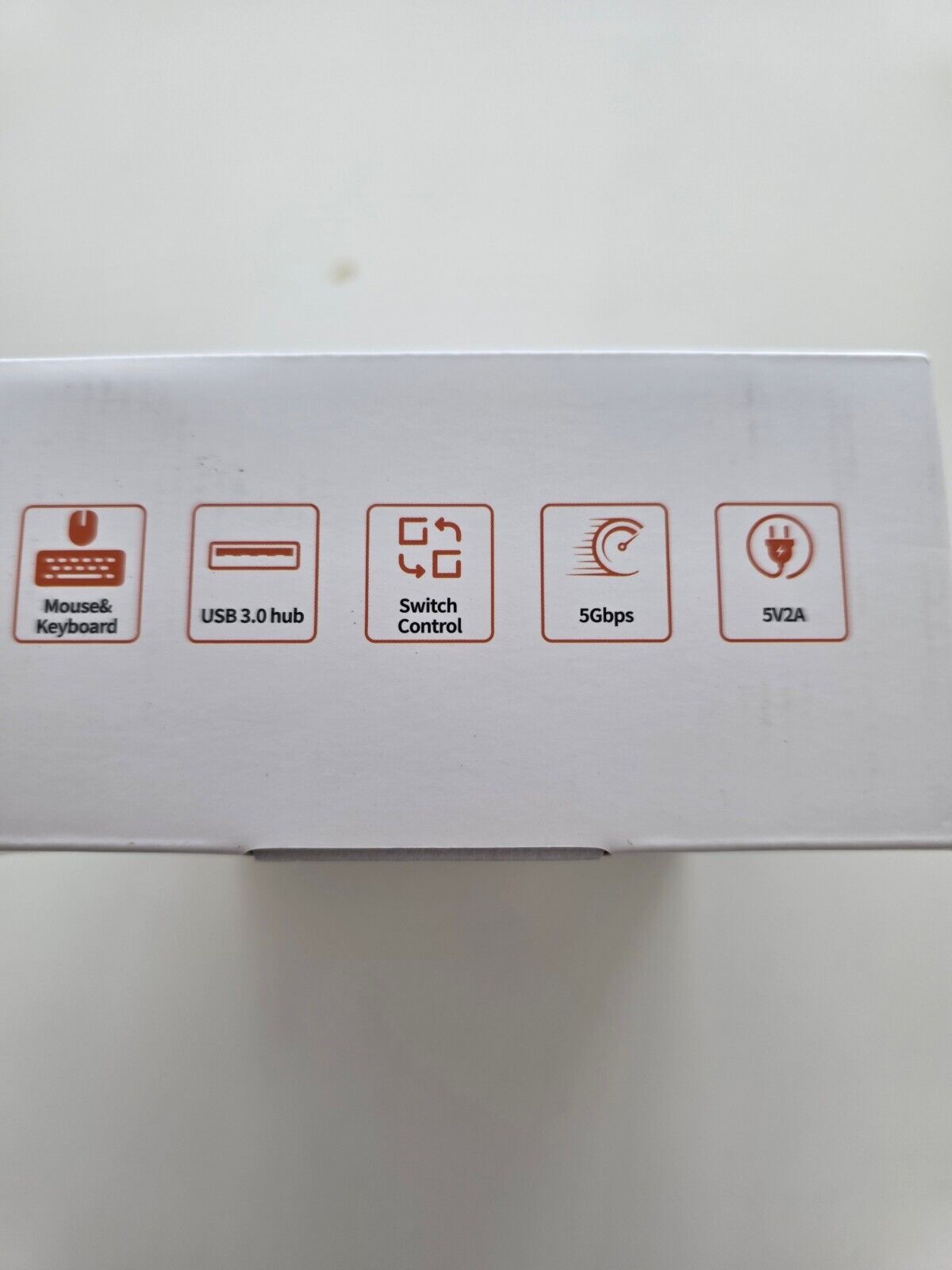- Lieferumfang: KVM-Switch, 2x USB-B-Kabel, 5V-Netzteil, Anleitung