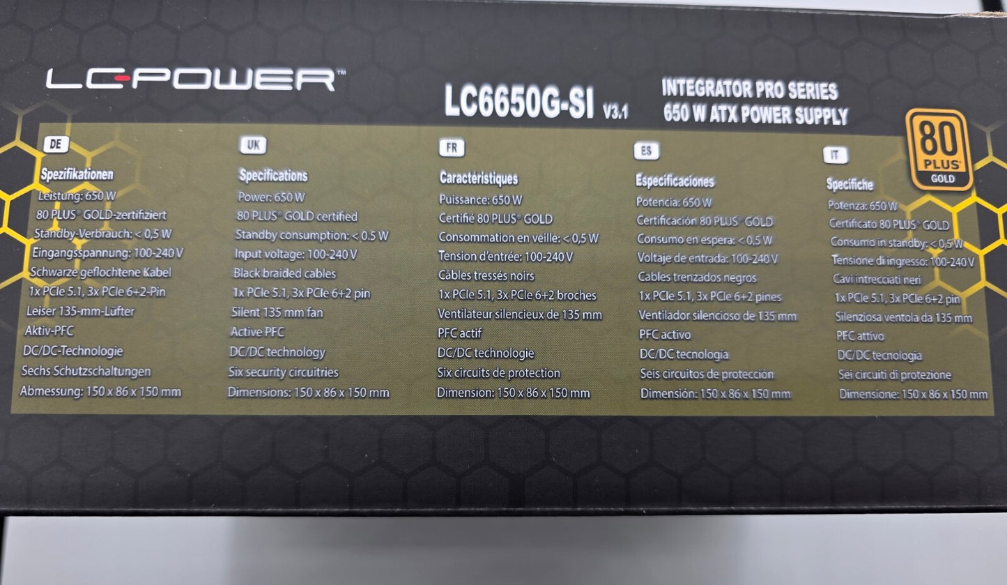 - 1x LC-POWER Integrator Pro 650W ATX V3.1 Netzteil (original verpackt)