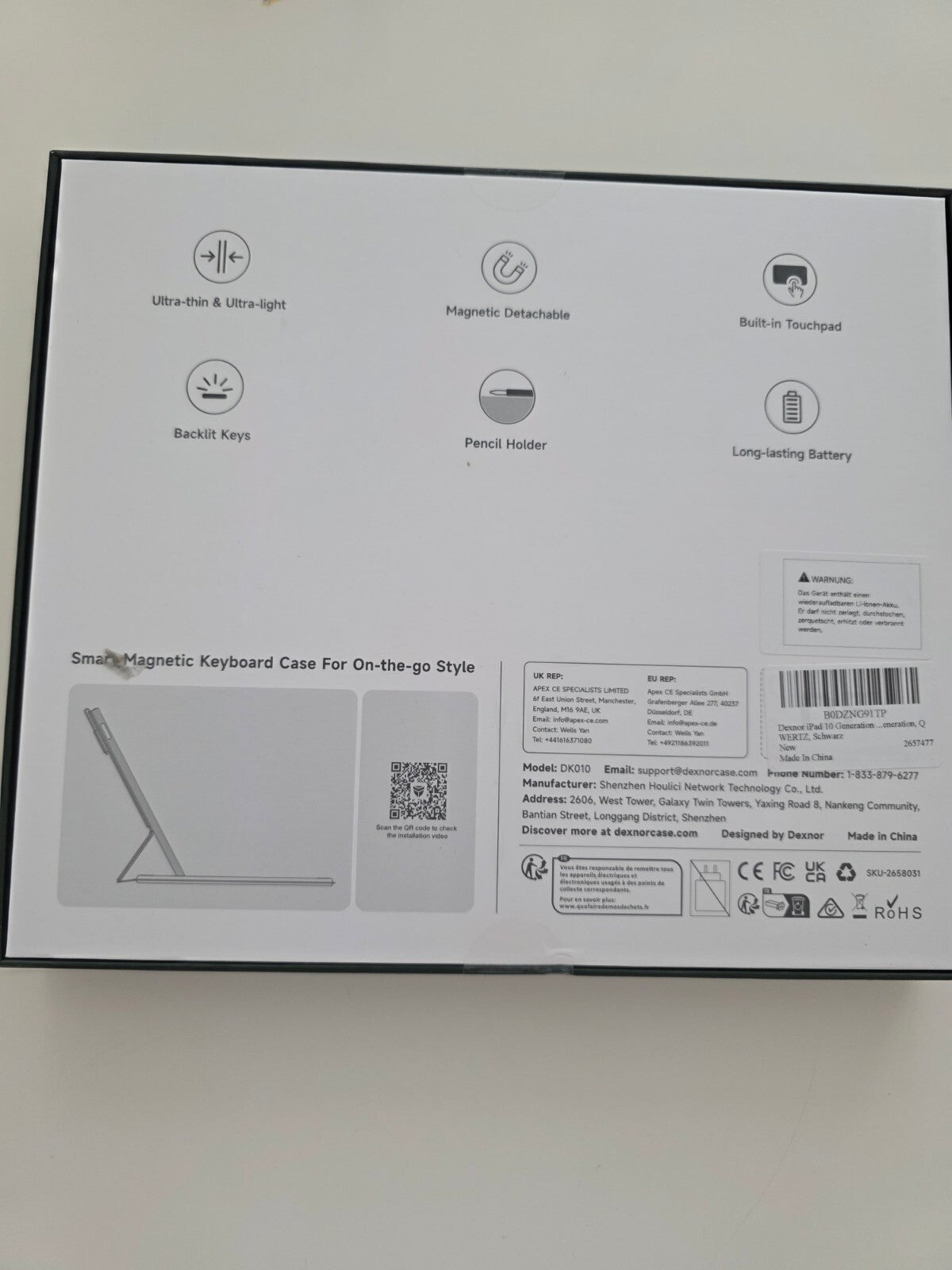- Besonderheiten: Magnetische Tastatur, Apple Pencil-Halter, Auto-Wake/Sleep, Energiesparmodus