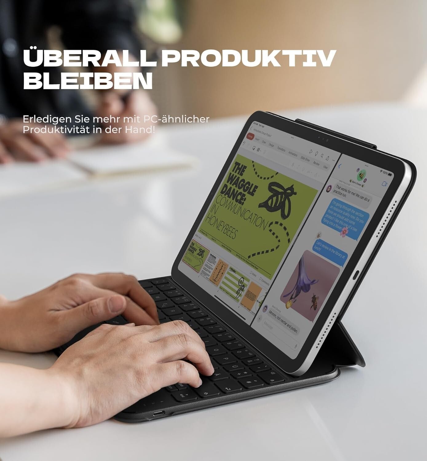 Verwandeln Sie Ihr iPad in einen leistungsstarken Laptop mit der Hülle mit Tastatur für iPad A16 11" 2025 und iPad 10. 10.9" 2022! Diese ultradünne, magnetisch abnehmbare Tastaturhülle mit deutschem QWERTZ-Layout, präzisem Multi-Touch-Trackpad und beleuchteten Tasten bietet ein erstklassiges Tipp- und Navigationserlebnis. Das schlanke Folio-Design mit Apple Pencil-Halter, Auto-Wake/Sleep-Funktion und robustem Schutz ist ideal für Arbeit, Studium oder Reisen. Perfekt für Homeoffice, Café oder unterwegs!